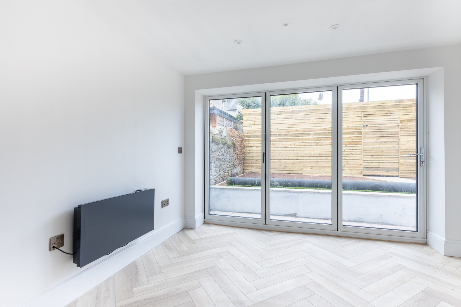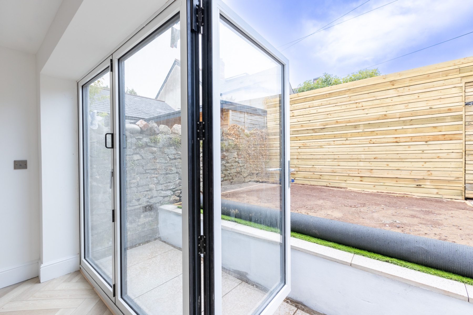 Bi-folding doors opening onto a rear courtyard garden