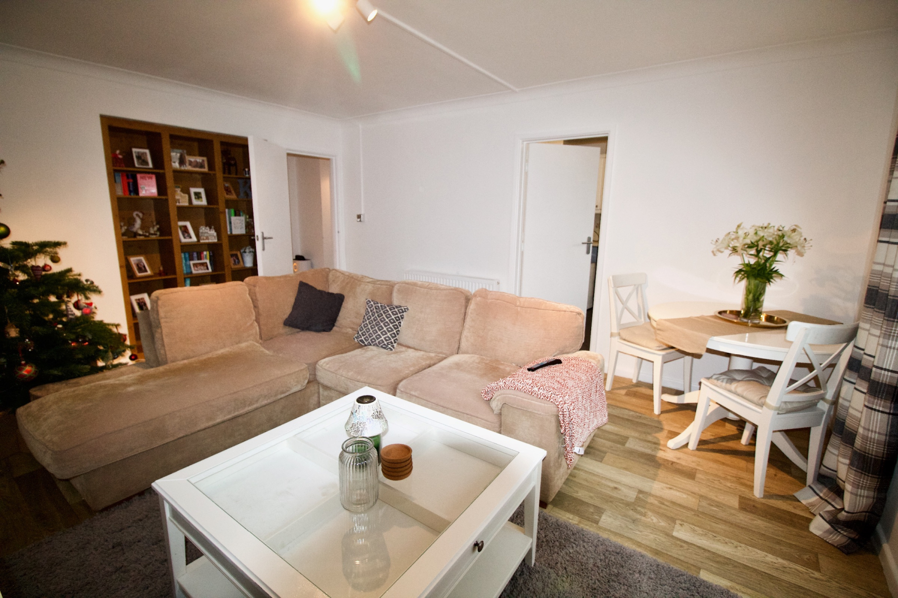 Immediately to the left of the entrance hallway is the fully fitted bathroom with modern white suite and powerful electric shower over. There are two large double bedrooms with views overlooking the rear garden. The extensive lounge to the front has ample room for a corner sofa, plus dining table, which leads on to the kitchen.