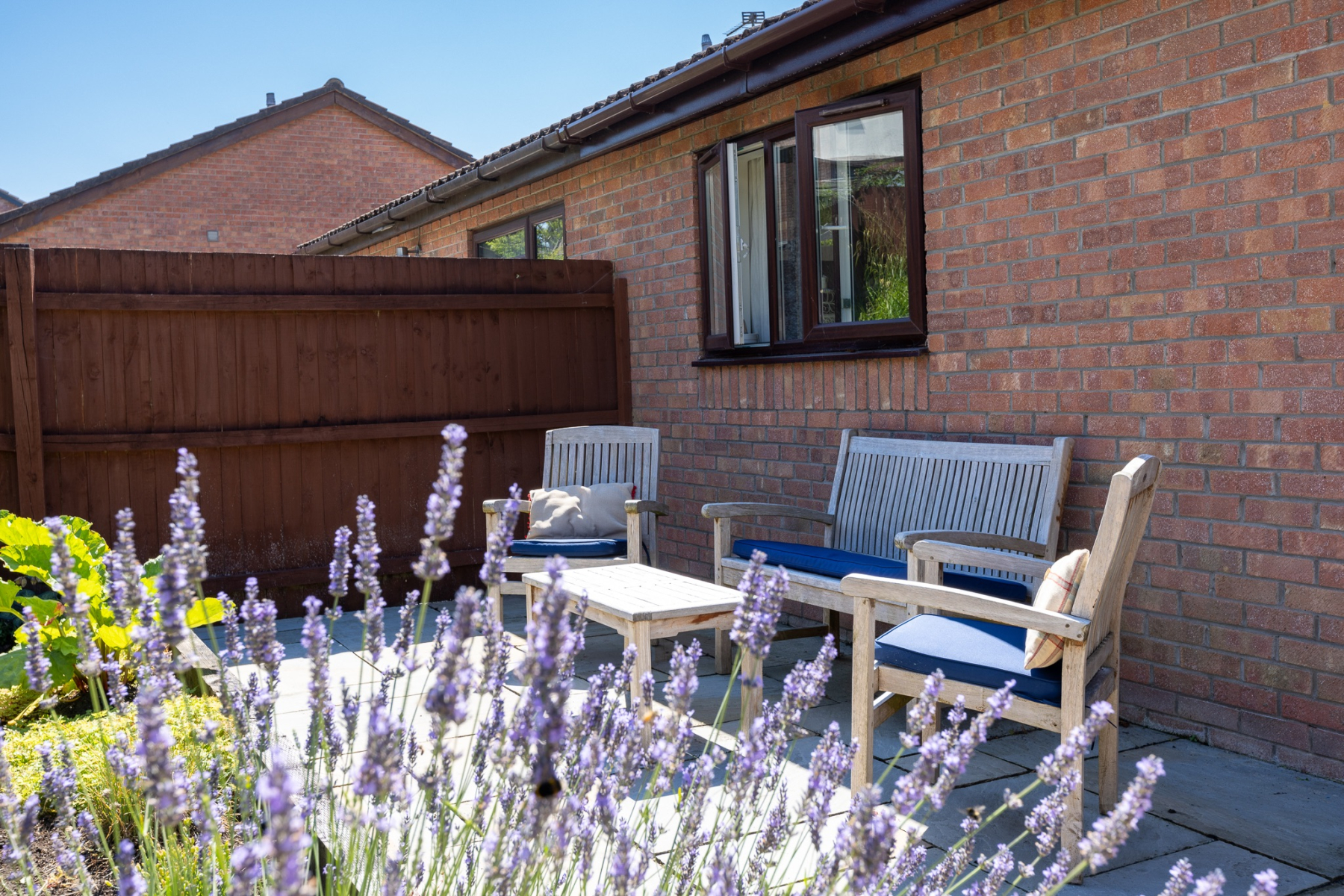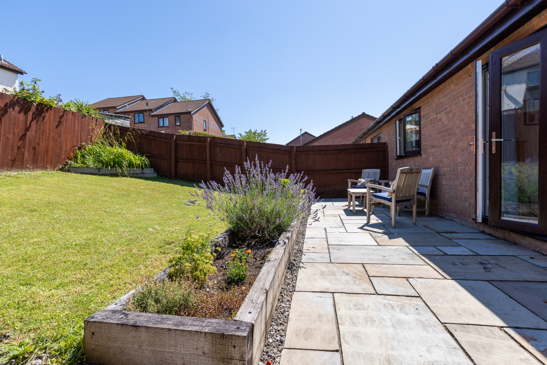 Rear Garden. To the rear there is a good size private garden laid predominately with lawn and a patio directly outside the master bedroom and Lounge/diner with fencing and fenced boundaries, plus well established trees to the rear providing privacy. The low maintenance garden is ideal for some al fresco dining and summer bbq parties.