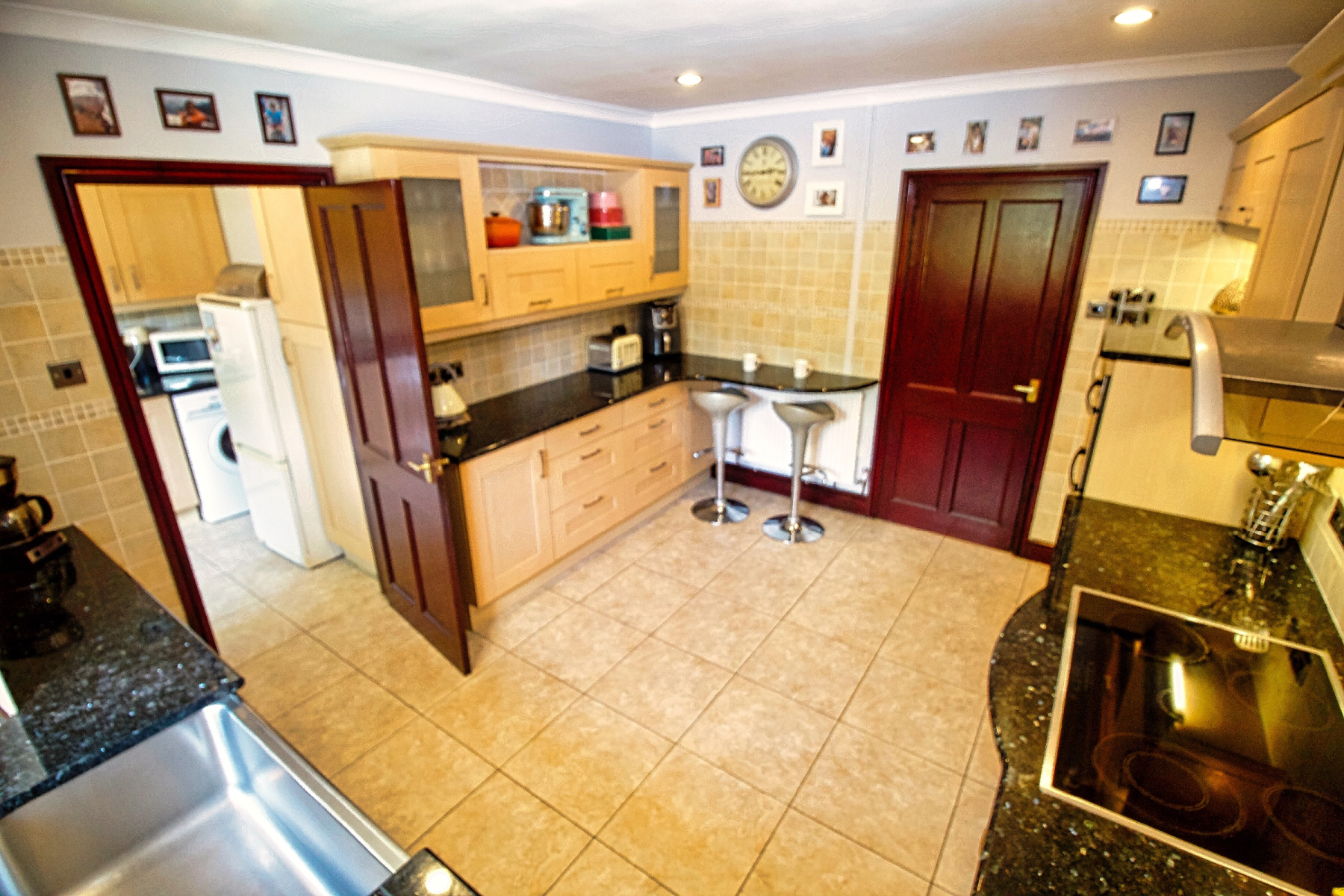 To the rear, the garden has several areas to enjoy, a patio to the full width of the house. Predominately laid with a manicured lawn, the garden boast, a Vegetable garden, Green House and mature shrubbery as well as the extensive patio directly outside utility and lounge, perfect to sit and relax and enjoy some alfresco dining with friends and family.