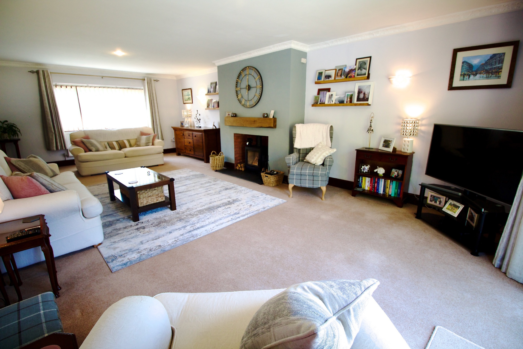 This extremely large, dual aspect, sitting room is the ideal place to relax after a hard days work, providing views of the back garden and access direct to the patio terrace, through glazed patio doors. Coved ceiling with a central feature fireplace comprising a stone hearth with NEW wood burning stove; the sliding patio doors open to allow the outside in on those warm sunny summer evenings, whilst the dual aspect lets ample light flood this generously sized room. The lounge offers the ideal environment for the whole family to relax of an evening. Carpet Flooring.