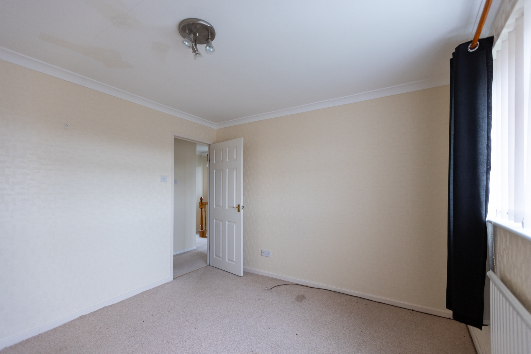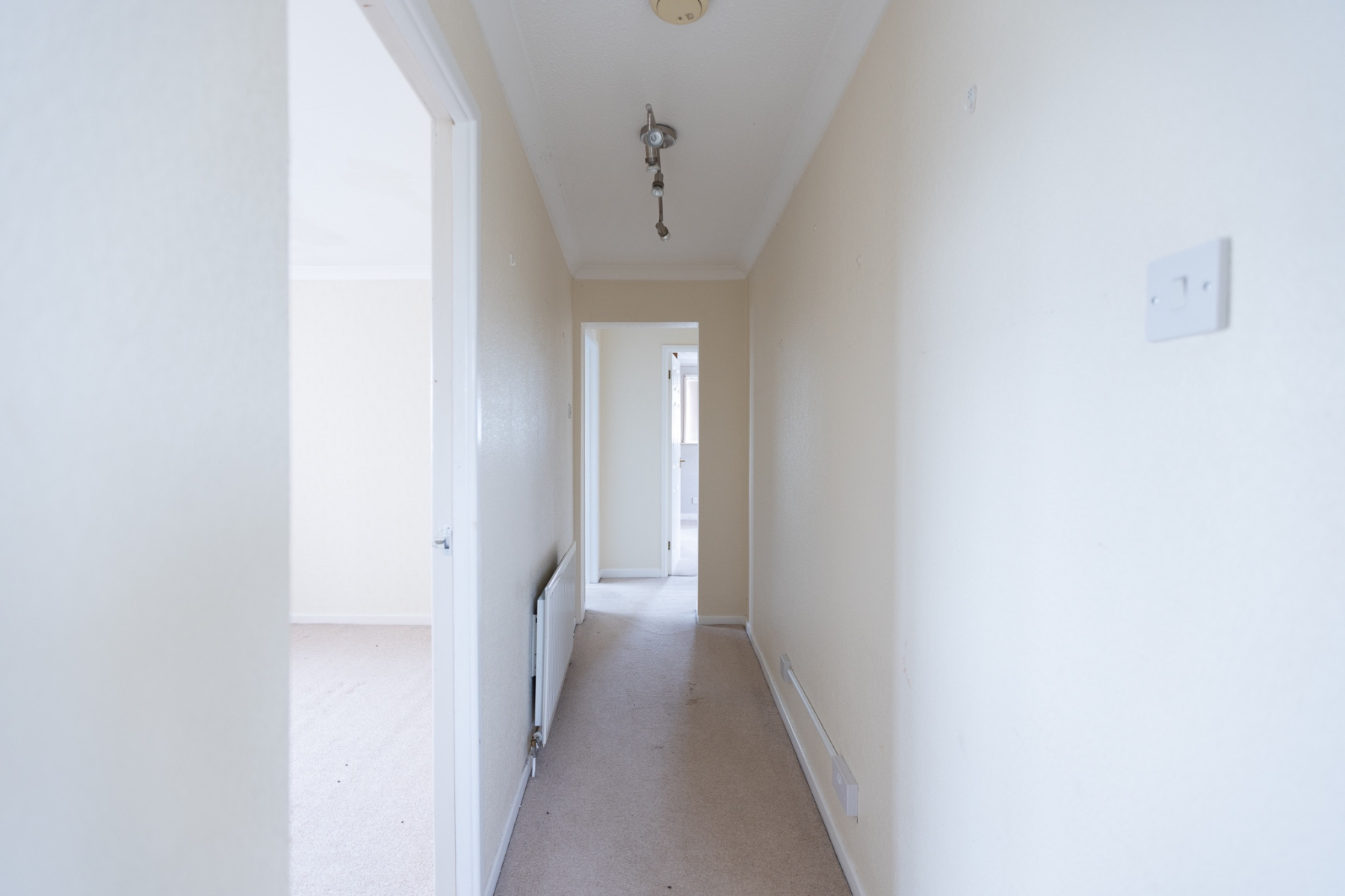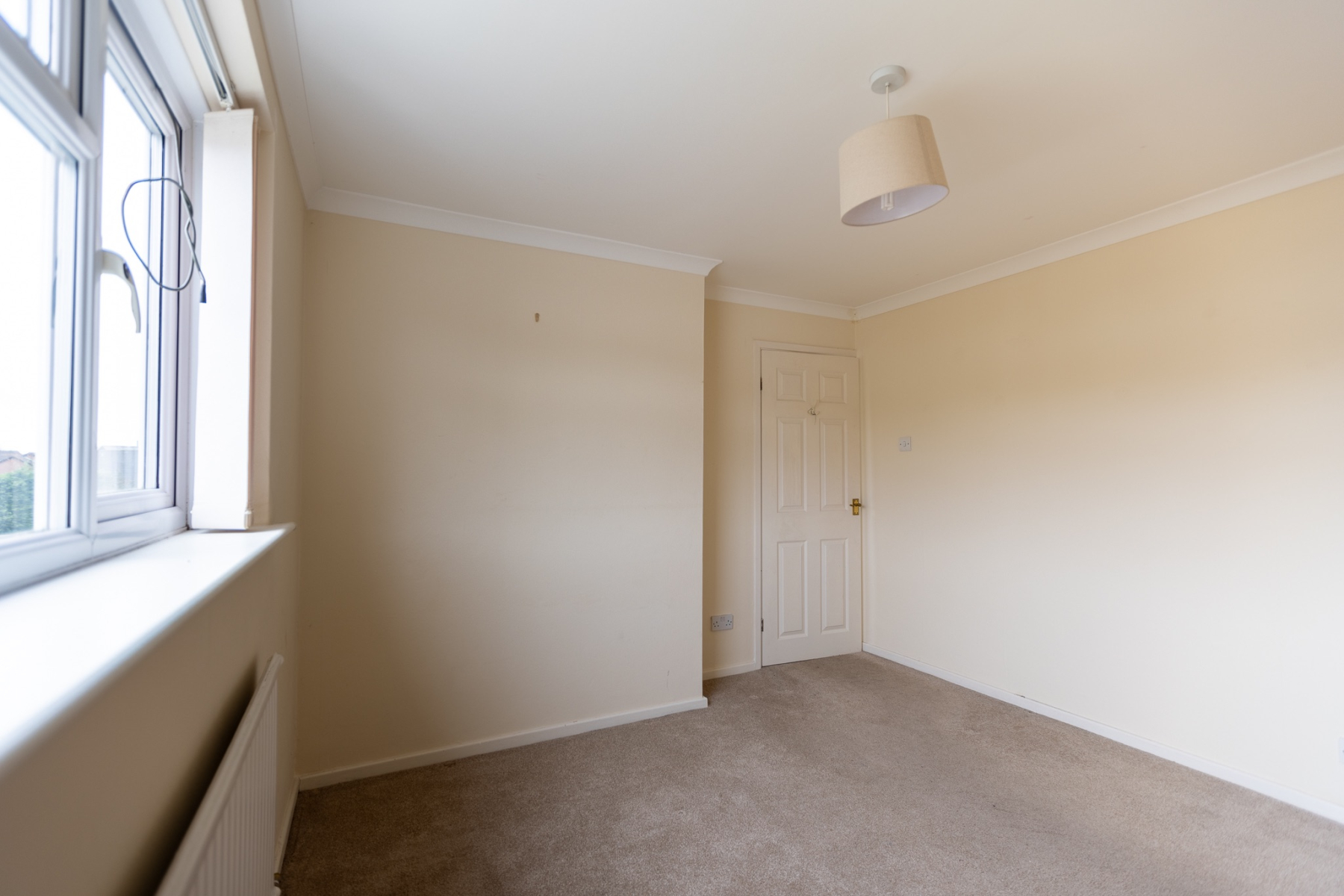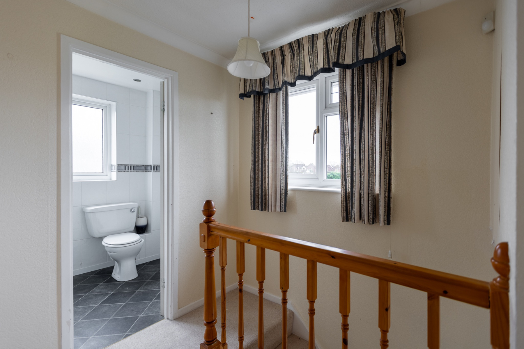 A bright Lshaped landing approached via a quarterturn staircase, featuring a side window, radiator and access to the loft.