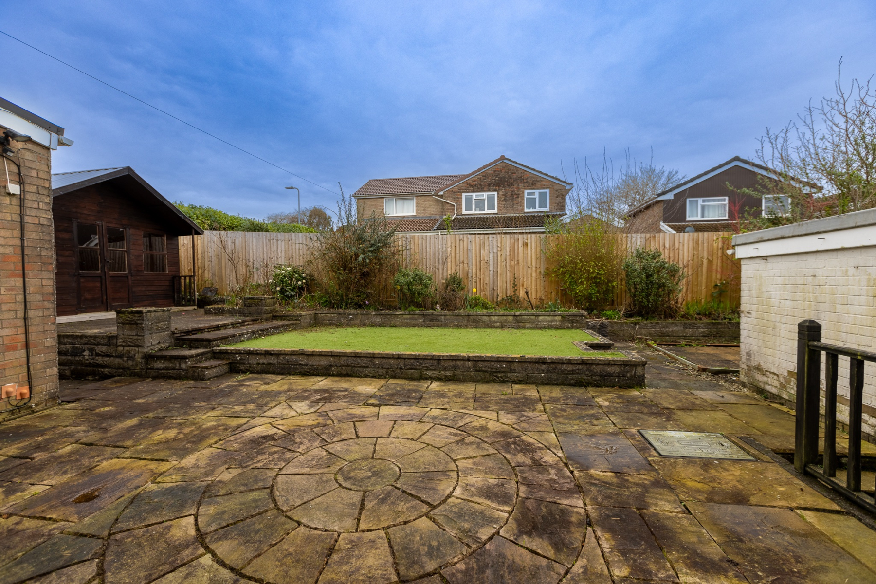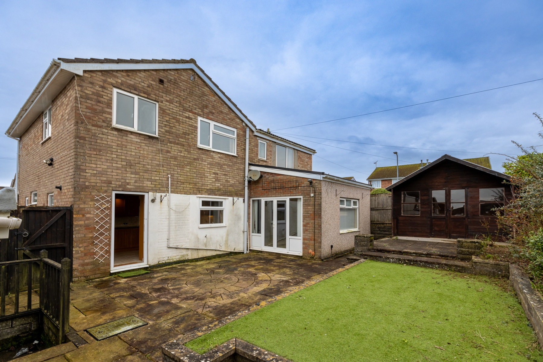 The rear garden offers a wonderfully lowmaintenance outdoor space, beginning with a generous paved patio ideal for dining and entertaining, which leads onto an area of artificial lawn for yearround ease. Set on a raised patio at the far end of the garden is a charming timber summer house, providing a versatile additional room that can be enjoyed in many ways. Its position creates a peaceful retreat away from the main house, making it perfect as a home office, hobby room, gym or a quiet place to unwind. The structure offers privacy and separation, there is also electricity and lighting, it can be used comfortably throughout the year. Its attractive design enhances the overall look of the garden while remaining easy to maintain, adding both lifestyle appeal and practical value to the outdoor space. Side access leads conveniently to the front of the property, with direct access also available to the garage.
