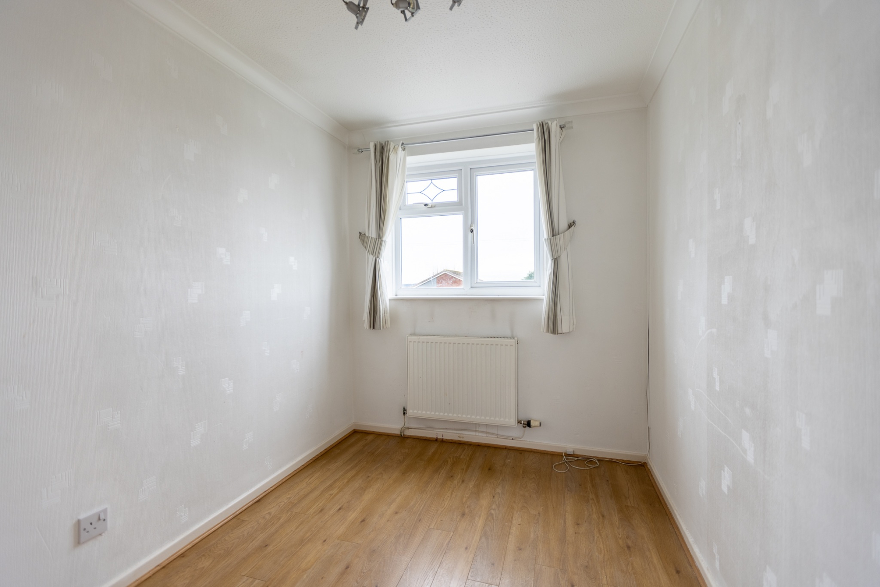A versatile fifth bedroom ideal as a study, nursery or single room. Overstairs storage cupboard, laminate flooring and radiator. This single bedroom with overstairs storage would be an ideal study, nursery or compact guest room, with useful builtin space.