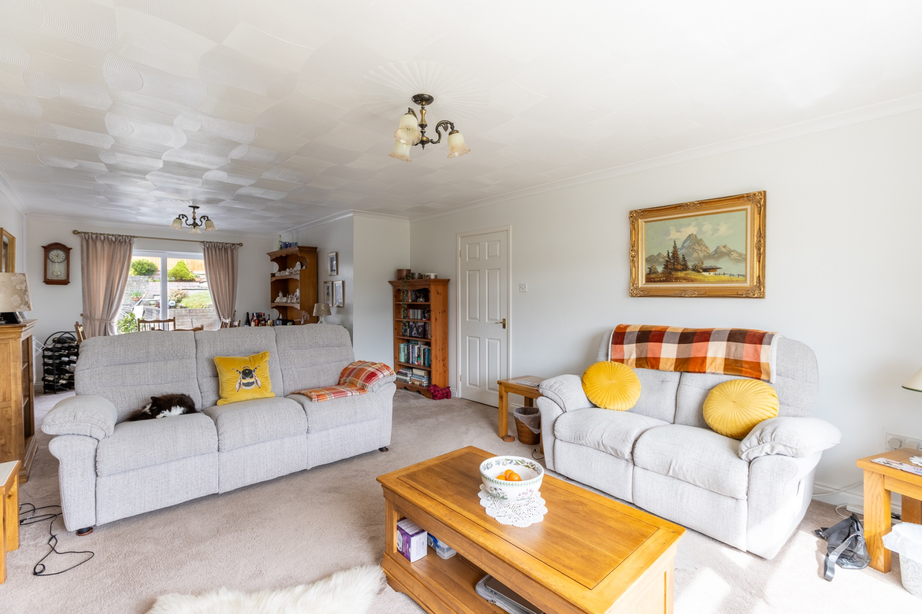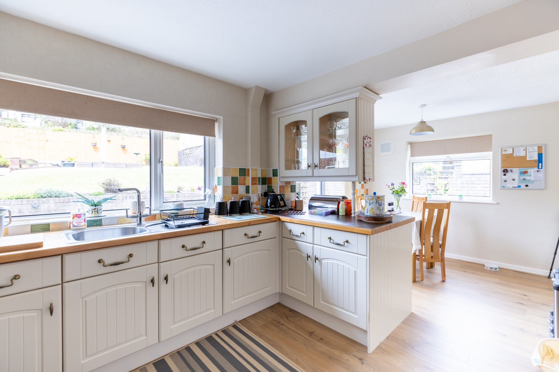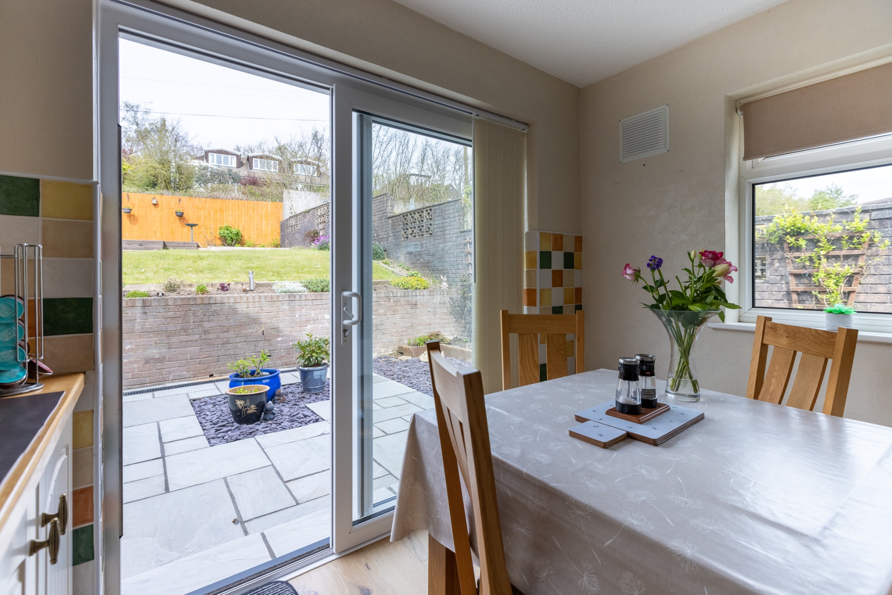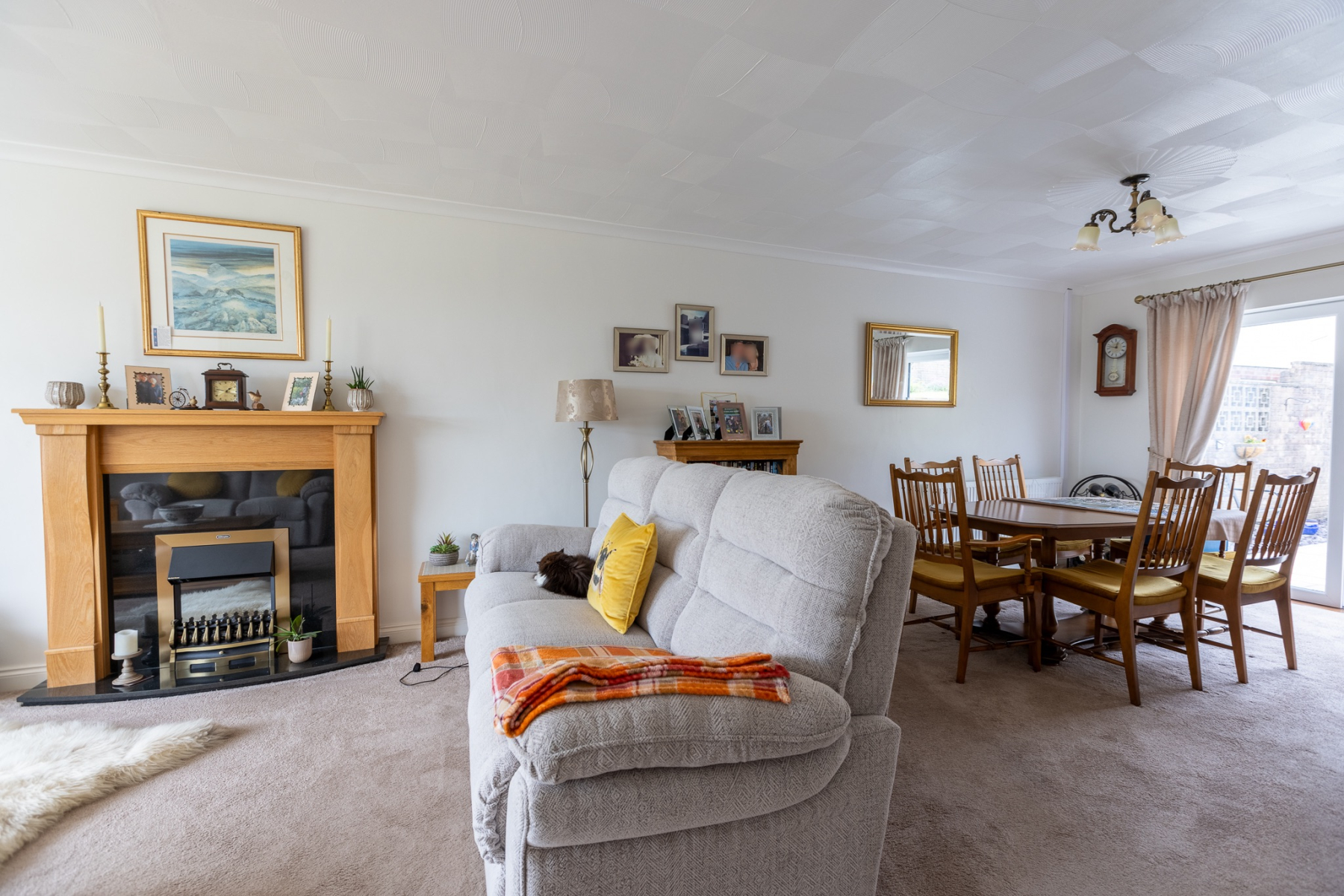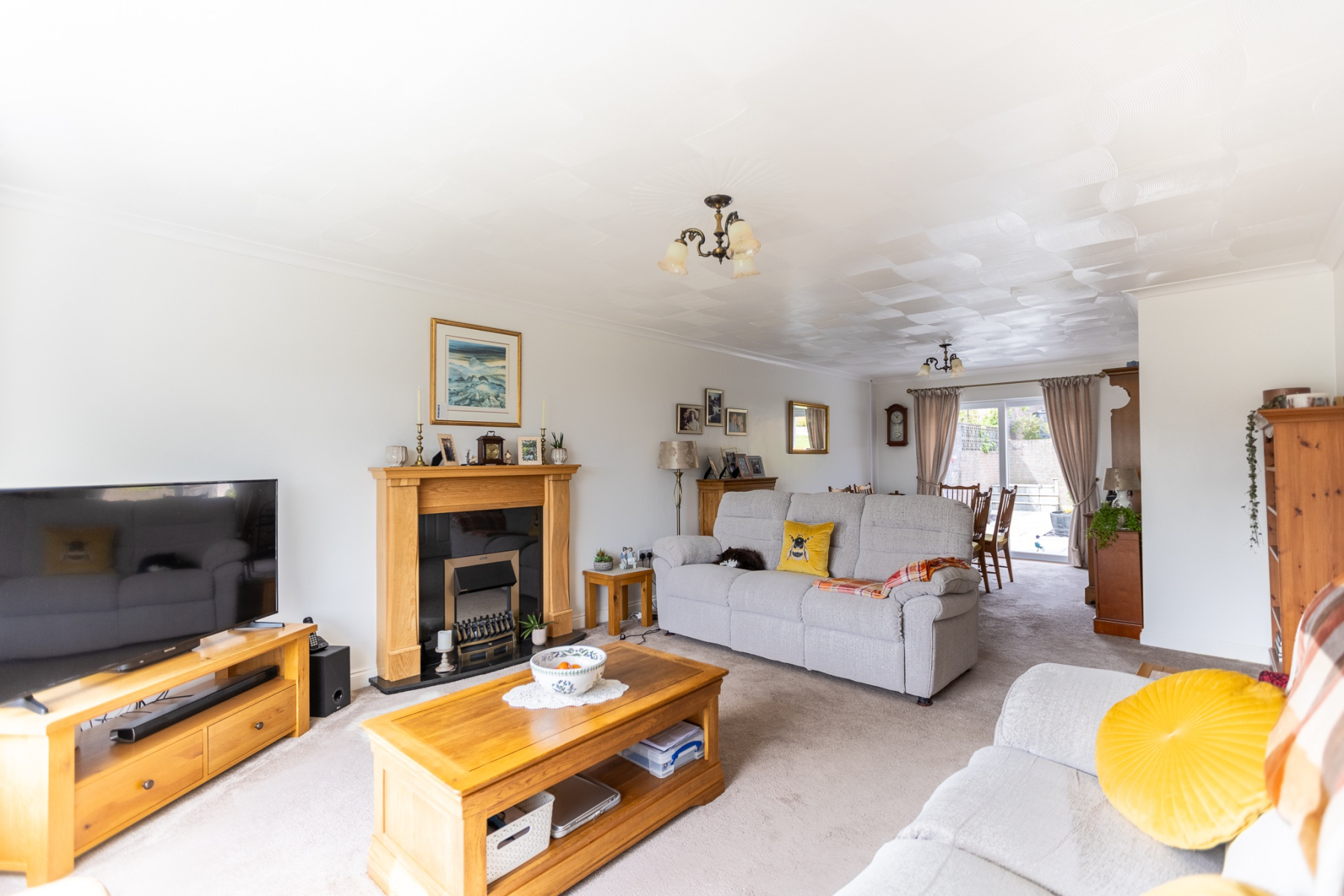 The living room is a true family hub - a bright, comfortable space with a large picture window overlooking the front garden. Whether it's cosy evenings together or weekend downtime, this room adapts effortlessly to modern family life. It opens seamlessly into the dining area, where large patio doors frame views of the garden and create a natural connection between indoors and out. It's the perfect setting for family meals, celebrations, and summer entertaining.