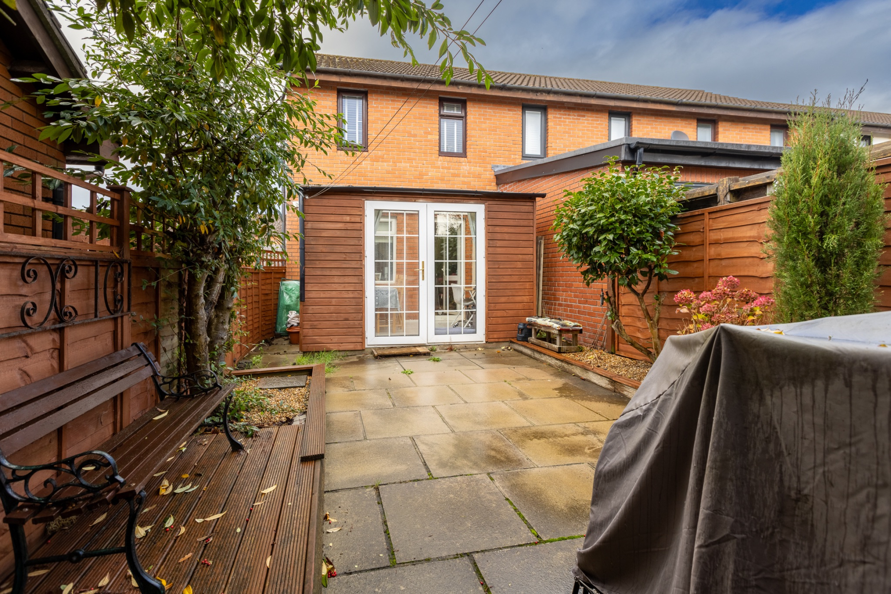 REAR GARDEN - The uPVC glazed door from the sun room, leads to the rear garden. The courtyard garden area stretches across the house, immediately outside the sun room door, ideal for some 'al fresco dining' and those special summer barbecues.