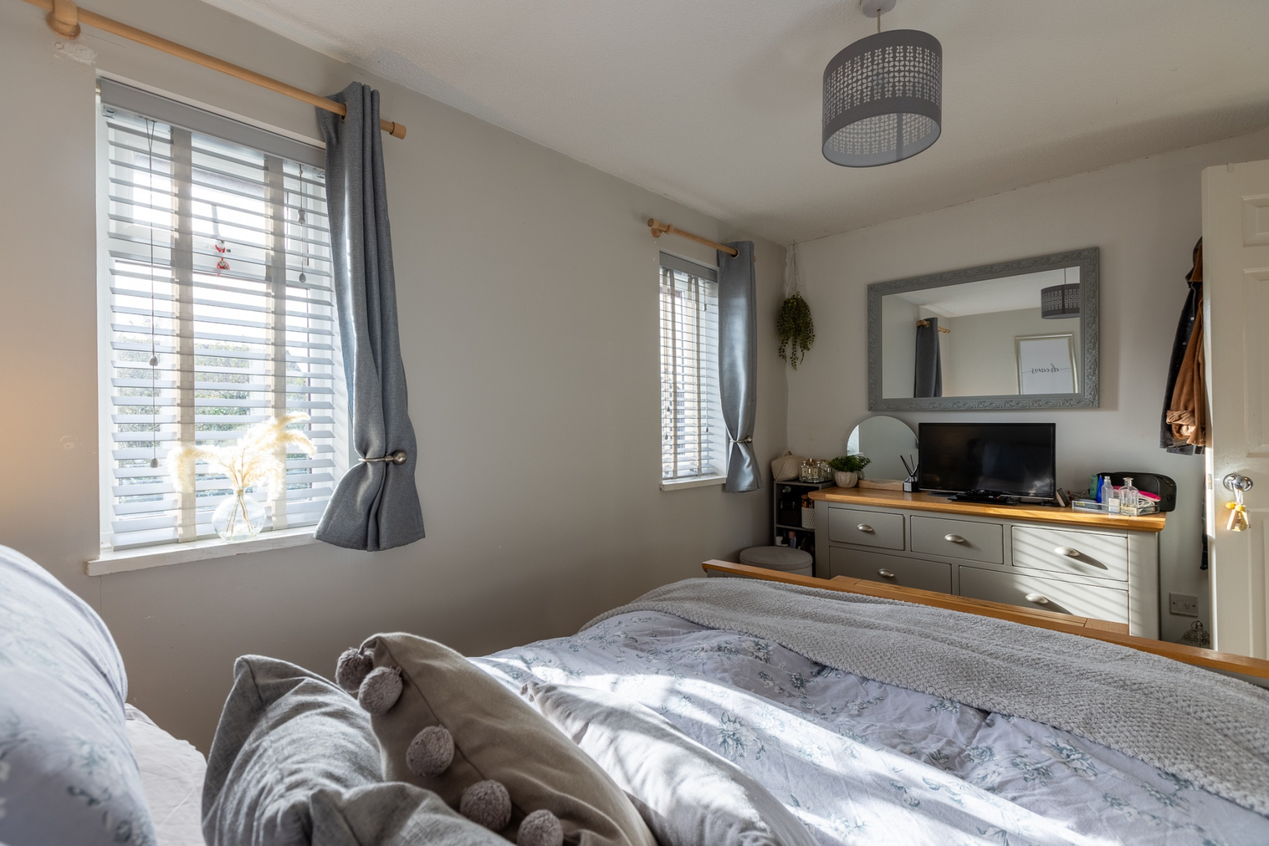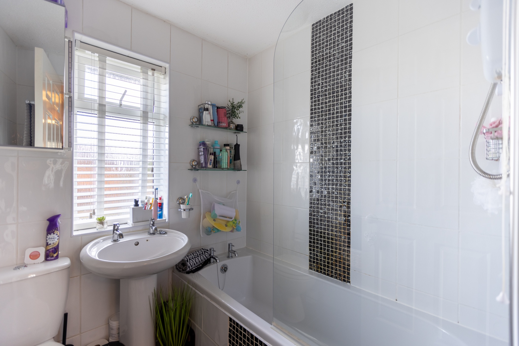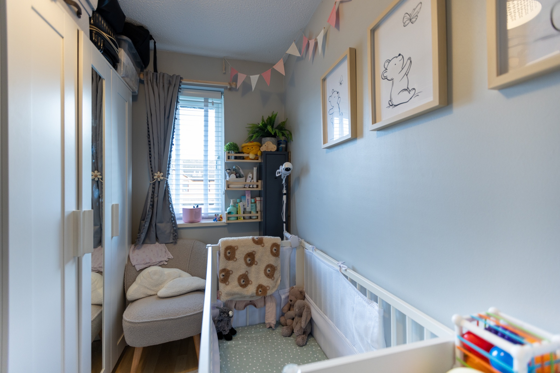 Upstairs, the landing leads to two bedrooms and a bathroom. The main bedroom is a generous double with builtin storage and rearfacing windows, while the second bedroom is a cosy single, perfect for a guest room, nursery or home office. The bathroom is fitted with a modern suite, including a bath with electric shower over, lowlevel WC, pedestal wash basin and heated towel radiator, with fully tiled walls and flooring for a contemporary finish.