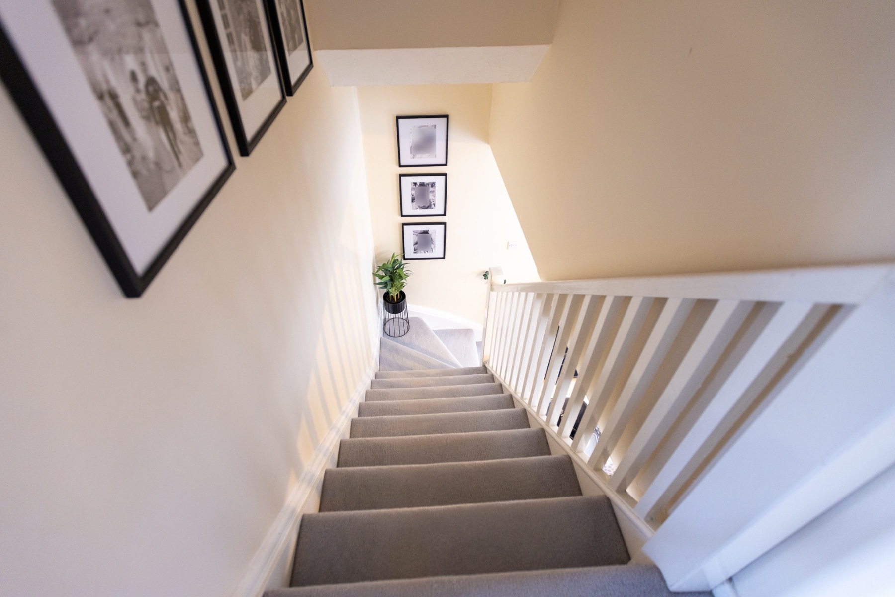 With access to both bedrooms and airing cupboard home to the wall mounted central heating boiler with shelving. Access to loft space. With cream carpet and glazed wooden doors to two bedrooms and family bathroom.